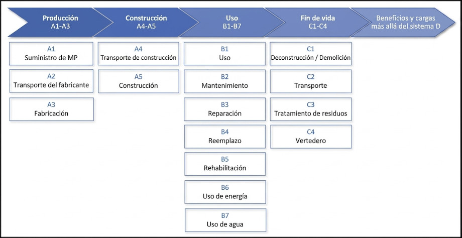Cuatro grandes bloques, denominados «módulos», permiten cuantificar con precisión los impactos ambientales de los productos: los módulos A, B, C y D.